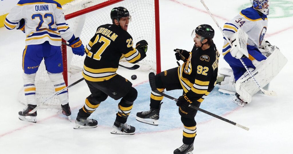 By KEN POWTAK Associated Press Marat Khusnutdinov scored 2:07 into overtime and the Boston Bruins beat the Buffalo Sabres 4-3